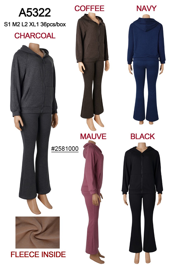 A5322 FLEECE HOODIE ZIP JACKET 2PCS/SET